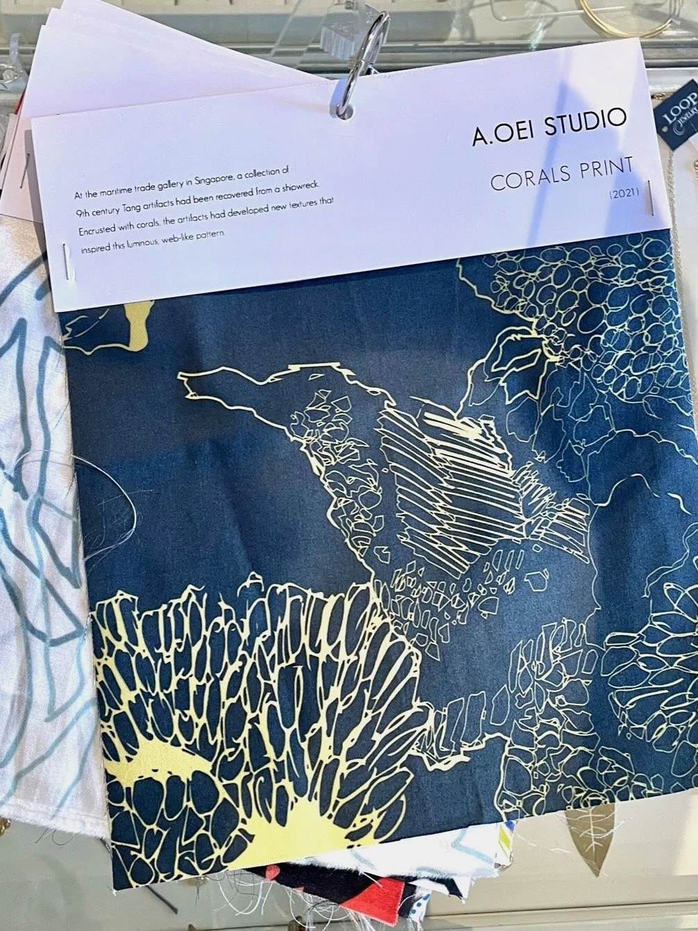 Speaking of being on the move, Angeline has lived in a number of cities so far. A Singaporean native, she trained at the Amsterdam Fashion Institute in the Netherlands. Then she designed for luxury womenswear brands in Antwerp, New York City, and Singapore, before founding A.Oei Studio in Seattle, and finally moving to D.C. As someone who has also moved around from coast to coast, I enjoyed hearing how she drew inspiration from the places she’s lived. While Singapore is very trend-driven, there’s a strong influence of Japanese style as well. Angeline appreciates the androgynous shapes and the focus that’s on the material itself. In Amsterdam, colors are muted and shapes are subtle and streamlined. She enjoys the contrast between the subdued palette and experimentation with textiles.
